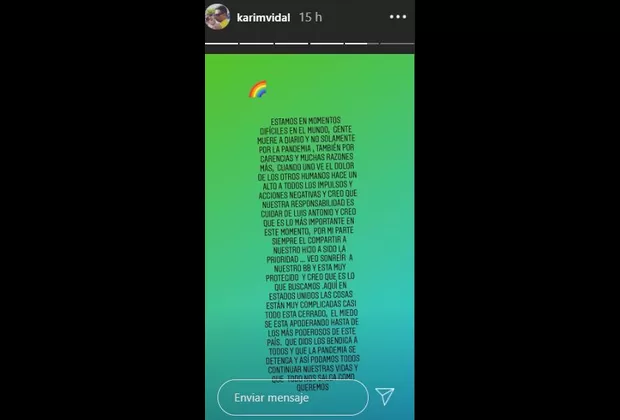 Todo parece indicar que Katty y Karim llegaron a un acuerdo por el bienestar del risueño Antoñito. Y es que, Vidal también dejó un mensaje en Instagram.
