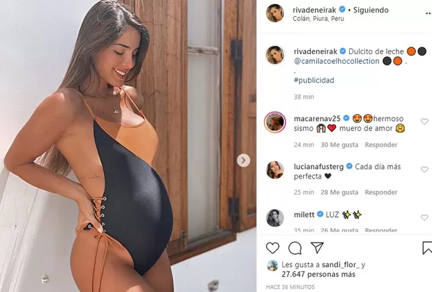 Mediante su cuenta de Instagram, la venezolana mostró su avanzado embarazo con una sexy ropa de baño entera.