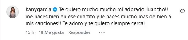García enfatizó la cercanía y el cariño que siente por Juancho, nombre con el que se refirió afectuosamente al músico durante el intercambio de mensajes.