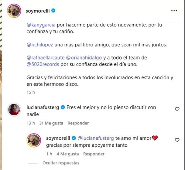 “@lucianafusterg te amo mi amor❤️ gracias por siempre apoyarme tanto”, señaló Morelli.