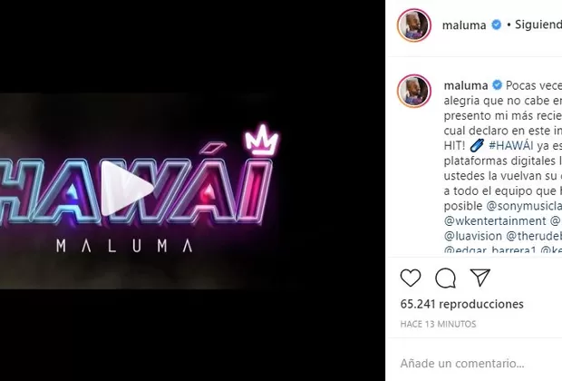 Hawái sigue el tono romántico, aunque un poco más movido, que sentó Maluma en el primer sencillo de su nuevo proyecto, titulado Amor de mi vida, del que ya ha presentado dos versiones, una en balada y la segunda con un toque urbano.