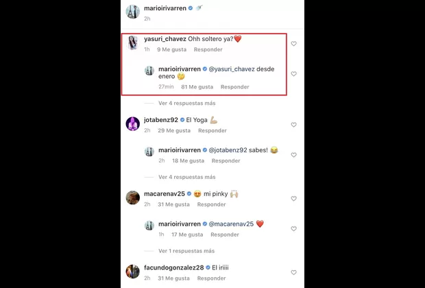 “¡Oh! ¿Soltero ya?”, preguntó la joven a lo que Mario respondió: “Desde enero”. El chico reality acompañó su publicación con un pensativo emoji.