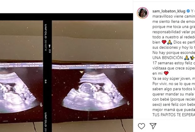 Samahara contó que se encuentra en el cuarto mes de gestación y acompañó la publicación de una ecografía de su bebé.