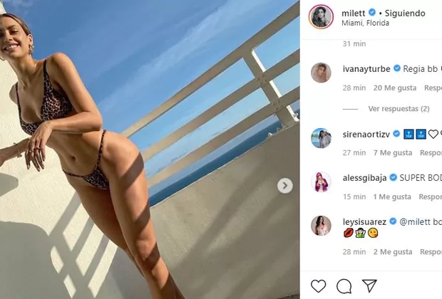 En las instantáneas, la popular Milechi luce un diminuto bikini animal print que realza su envidiable figura. En pocos minutos, las fotos superaron los 18 mil likes.