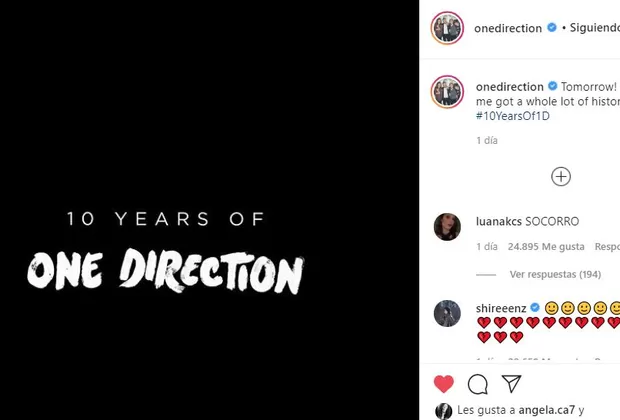 “10 years of One Direction (“10 años de One Direction”)”, fue el mensaje en la popular red social.