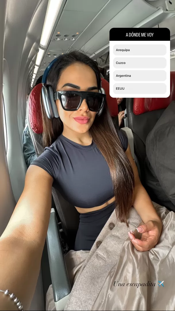 A través de sus historias de Instagram, la integrante de Esto es Guerra compartió imágenes dentro de un avión, por lo que hizo una encuesta a sus seguidores para adivinar su lugar de destino.