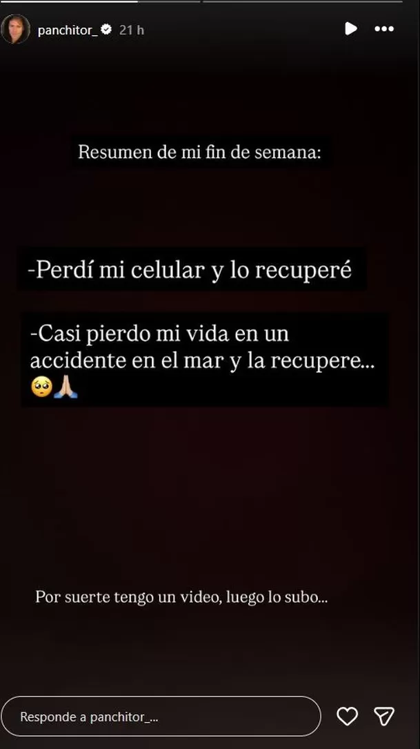 El exchico reality también reflexionó sobre los riesgos del momento. “Si al caer me golpeaba la cabeza, si no lograba reaccionar…”, escribió, dejando abierta la posibilidad de un desenlace distinto. Sus palabras reforzaron la gravedad del accidente en el mar.