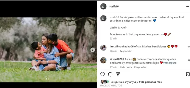 “Podría pasar mil tormentas más… sabiendo que al final estarán mis niños esperando por mí. Este amor es lo único que me llena y me cura”, escribió Fuentes en su cuenta de Instagram.