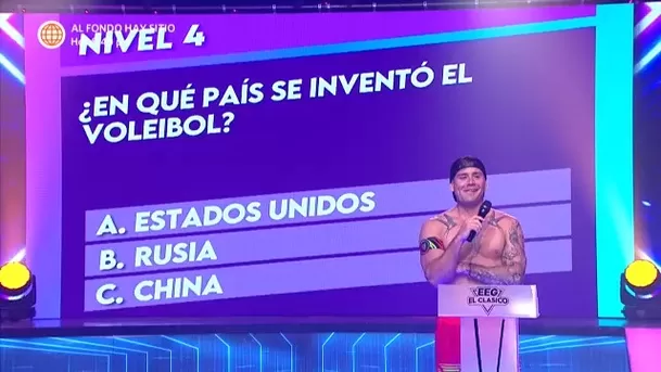 Sorprendentemente, el capitán de los combatientes respondió correctamente los cinco niveles, sin darle la chance a Patricio de contestar una sola pregunta, lo cual significaba que el guerrero debía ingresar a la ducha y recibir tremendo baño.