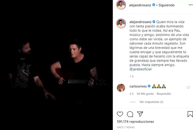 “Pau, no sé qué decirle a tu familia. Porque a mí me cuesta contener las lágrimas, me imagino a ell@s. Gracias por la luz que derramaste en tu corta pero preciosa vida y gracias por tu amistad. Un abrazo desde el fondo de mi alma a tu familia. Descansa, amigo", escribió Alejandro Sanz.