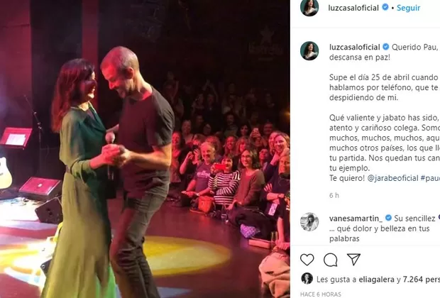 La cantante Luz Casal, quien afrontó el cáncer el año pasado, posteó: "Supe cuando hablamos por teléfono que te estabas despidiendo de mí. Qué valiente y jabato has sido, qué atento y cariñoso colega. Somos muchos, aquí y en muchos otros países, los que lloramos tu partida. Nos quedan tus canciones y tu ejemplo ¡Te quiero!"