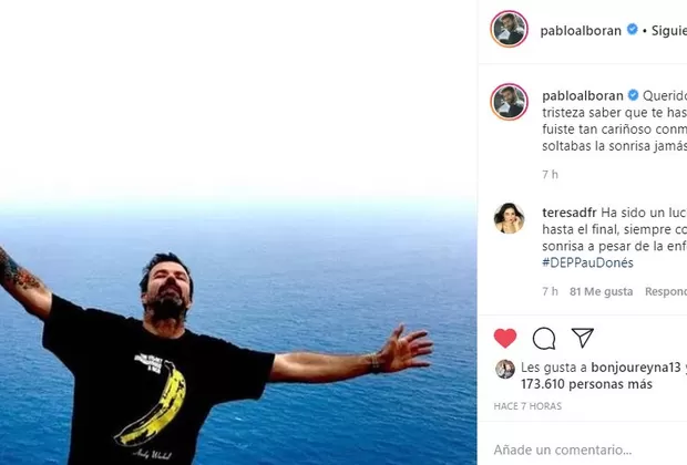 “Querido Pau, qué tristeza saber que te has ido. Siempre fuiste tan cariñoso conmigo y no soltabas la sonrisa jamás. Feliz viaje”, escribió Pablo Alborán, mientras que el grupo español Hombres G publicó en redes: “Se va un grande, un gran luchador”.