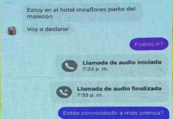 “Estoy en el Hotel Miraflores Park del Malecón voy a declarar”, escribió.