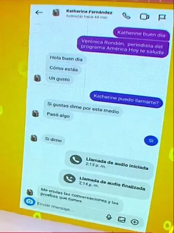 Lo extraño es que justo cuando la reportera del programa estaba en camino para recoger el testimonio de Katherine, esta cortó toda comunicación y no volvió a responder más.