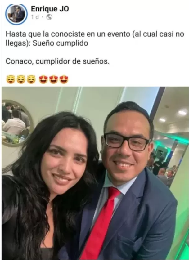 Lo que más llamó la atención fue el mensaje con el que acompañó la publicación: “Hasta que la conociste en un evento (al cual casi no llegas). Sueño cumplido. Conaco, cumplidor de sueños”.