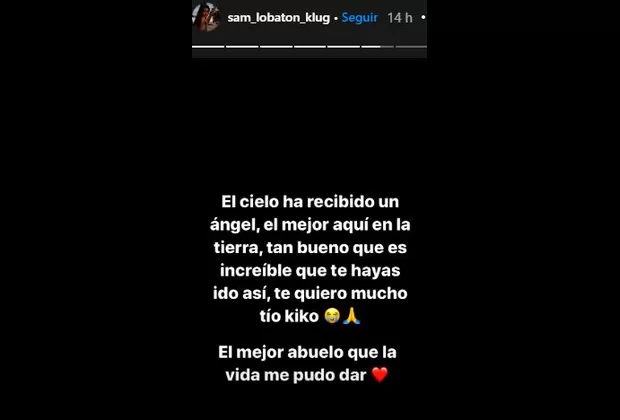 "El mejor abuelo que la vida me pudo dar", afirmó también Samahara a través de sus historias en la red social. La hija de Melissa Klug compartió una foto familiar en la que manifestó "te amamos tío Kiko".