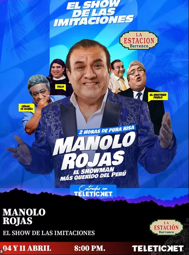 En el afiche se promocionaba el show de Manolo Rojos con sus mejores caracterizaciones como ‘Tulia’, ‘El brother pablo’ y ‘César Te Acuña’.