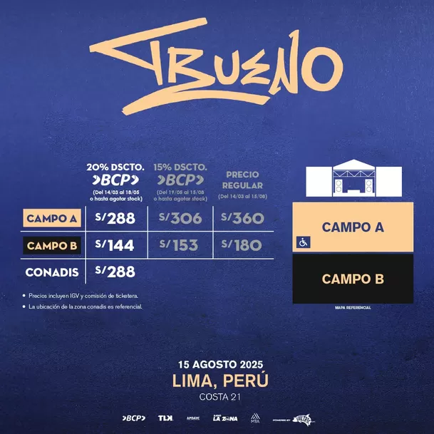 Se recomienda a los fanáticos adquirirlas con anticipación, ya que el artista cuenta con una gran base de seguidores en Perú y se espera una alta demanda.