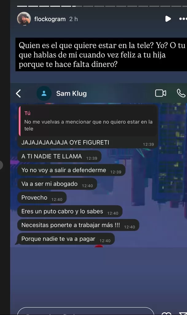 En otra historia de Instagram, Youna expuso un chat de WhatsApp, en el que Samahara Lobatón lo insulta y humilla.