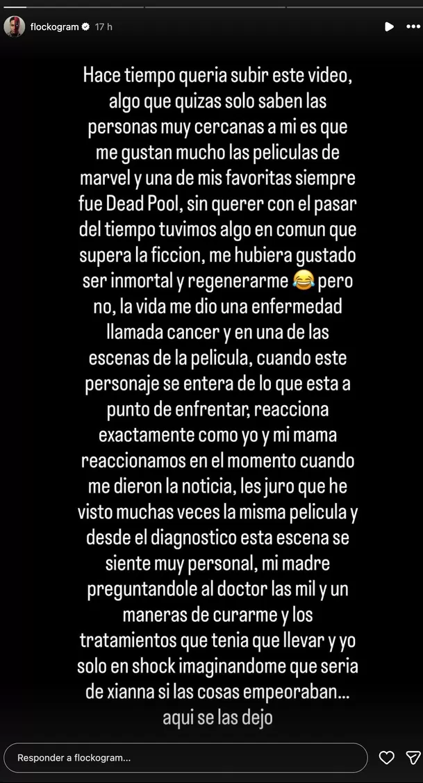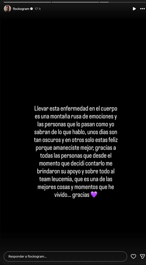 A través de sus historias de Instagram, el influencer compartió un extenso mensaje donde recordó cómo recibió el diagnóstico y el impacto que tuvo en su vida.