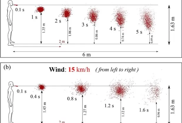 Estudio constata que con una ligera brisa de 4 km/h la saliva viaja casi 5.5 metros en 5 segundos
