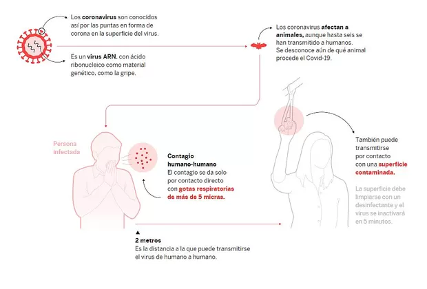 Las autoridades sanitarias no han podido determinar, hasta el momento, la forma de contagio del coronavirus. Pero por analogía con otras infecciones parecidas, la hipótesis más aceptada es la transmisión entre humanos a través del contacto con secreciones que el portador del virus genera al toser o estornudar. Los científicos creen que la propagación ocurre cuando incluso no se presentan los síntomas.