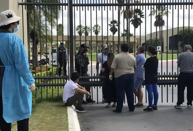 Decenas se agolpan en el camposanto Parques de la Paz, para exigir que les entreguen a sus difuntos para enterrarlos. Los cadáveres corresponden a personas que fallecieron en hospitales o en domicilios y fueron levantados por las autoridades. Foto: EFE/ Cristina Bazan
