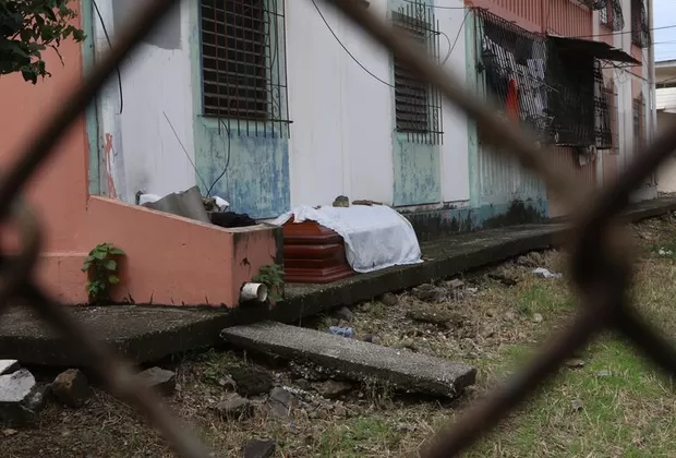 Foto cedida por el Diario Expreso que muestra un féretro con un fallecido que deberá ser recogido por las autoridades para ser enterrado. EFE/Juan Faustos/Cortesía Diario Expreso