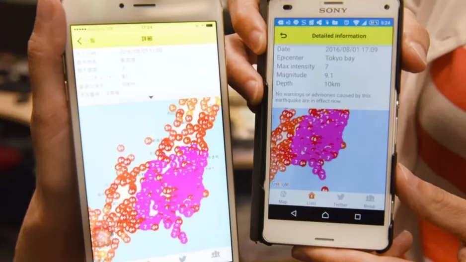 La aplicación Yurekuru envió la alerta a todos los smartphones de sus usuarios, causando gran zozobra: "¡Temblor de tierra! ¡Temblor de tierra!", fue la señal del aplicativo.
