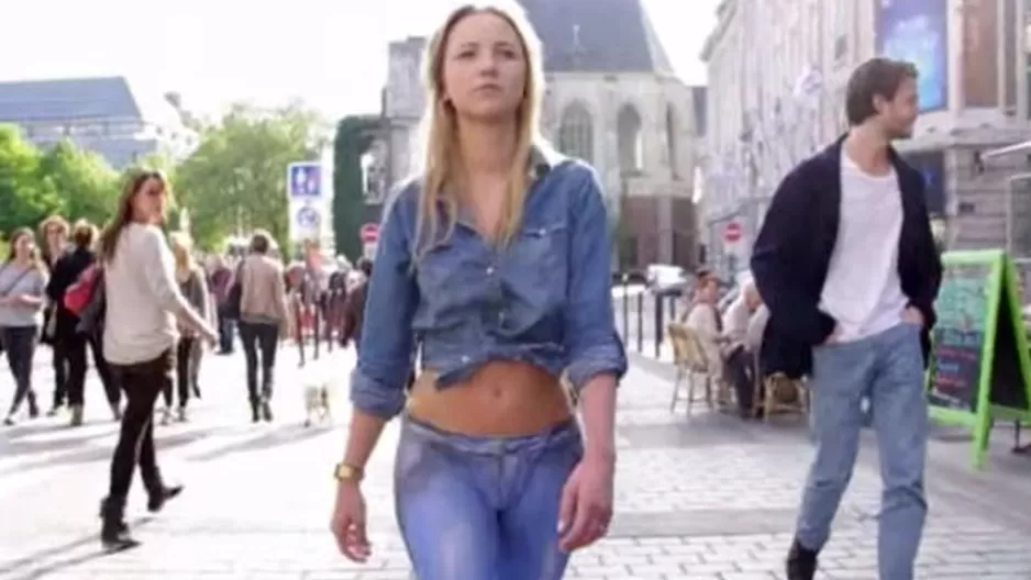 Una mujer decidió salir a caminar por las calles sólo con un body painting que hacía parecer que llevaba puestos unos jeans y pasó desapercibida porque lo realístico del trabajo con pintura.