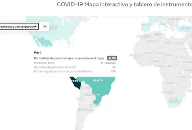 En Sudamérica, solo en Brasil y Perú hay dos criterios adicionales: porcentaje de personas que se quedan en el lugar, y cambios en su movimiento. Esta información, al igual que la proporcionada por Google en sus reportes semanales, permiten analizar cómo se desplaza la población para revisión de las medidas de confinamiento. Este mapa utiliza datos públicos agregados para proteger la privacidad de las personas, y no está destinado a fines de diagnóstico, asegura Facebook en su plataforma.
