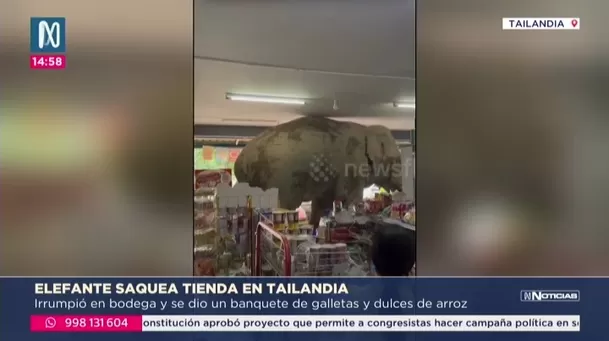 Un elefante llamado Plai Biang Lek fue grabado mientras ingresaba a una tienda en Pak Chong, Tailandia, y se llevaba galletas de arroz y huevos. El hecho sorprendió a los vecinos y se volvió viral en redes sociales. Aunque no es raro que elefantes se acerquen a zonas pobladas, sí lo es que entren a locales comerciales. Las autoridades evalúan medidas para evitar que se repita este tipo de situaciones.