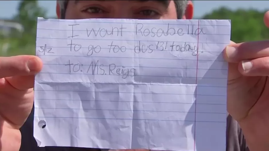 Charlie Dahu es un padre que está bastante enojado con los empleados de la escuela de su hija Rosabella de 7 años. Según informó al medio KTRK, ellos – de alguna manera inexplicable – creyeron en una nota falsa presentada por la menor y dejaron que se vaya del colegio en un bus.
