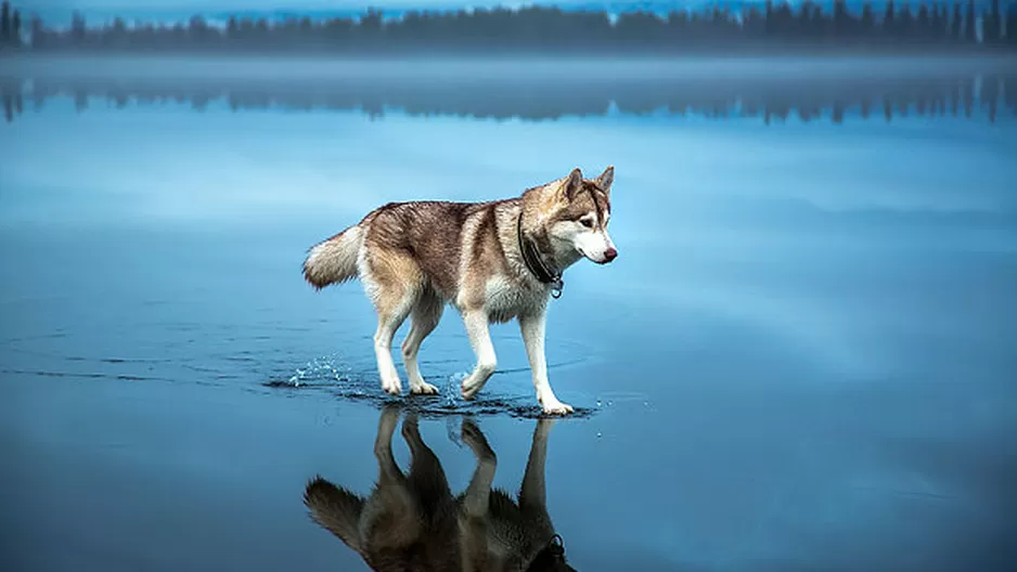 Una foto de un perro siberiano presuntamente caminando sobre agua se ha vuelto viral en redes sociales, después de un usuario lo publicara en Reedit.