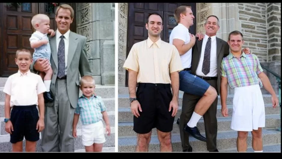 Los tres se pusieron la misma ropa que usaban cuando eran niños y se tomaron fotografías en las mismas posiciones.