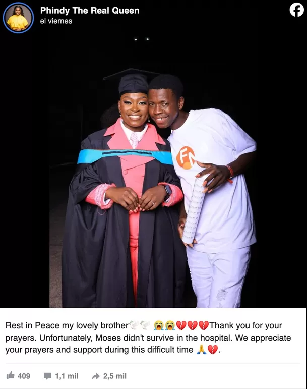Diversos usuarios y amigos del influencer expresaron su dolor en redes sociales. Una de sus amigas más cercanas compartió en Facebook: “Descansa en paz, querido hermano. Gracias por sus oraciones. No resistió en el hospital”.