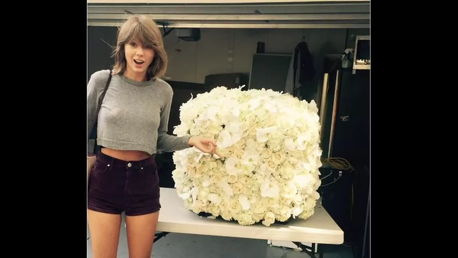 2. Luego está la estrella pop Taylor Swift parada junto al arreglo floral que Kanye West le envió despuéés de los Video Music Awards 2015. La foto tiene 2.5 millones de likes.