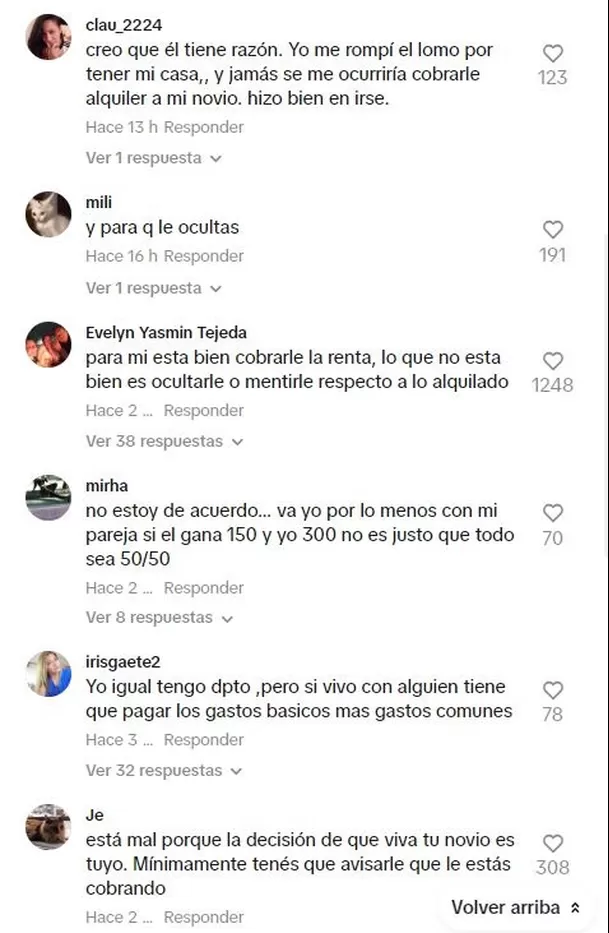 Según reveló, el papá de la joven le regaló un departamento por su graduación. La mujer estuvo viviendo sola por un tiempo, pero luego de tres años de relación con su pareja, decidieron convivir en la mencionada propiedad. Es en ese momento en el que le dice a su novio para compartir los gastos del alquiler en partes iguales. Es decir, no le dijo que era la dueña del inmueble.