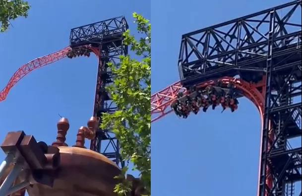 ¡Terror en las alturas! Turistas quedaron colgados boca abajo en montaña rusa