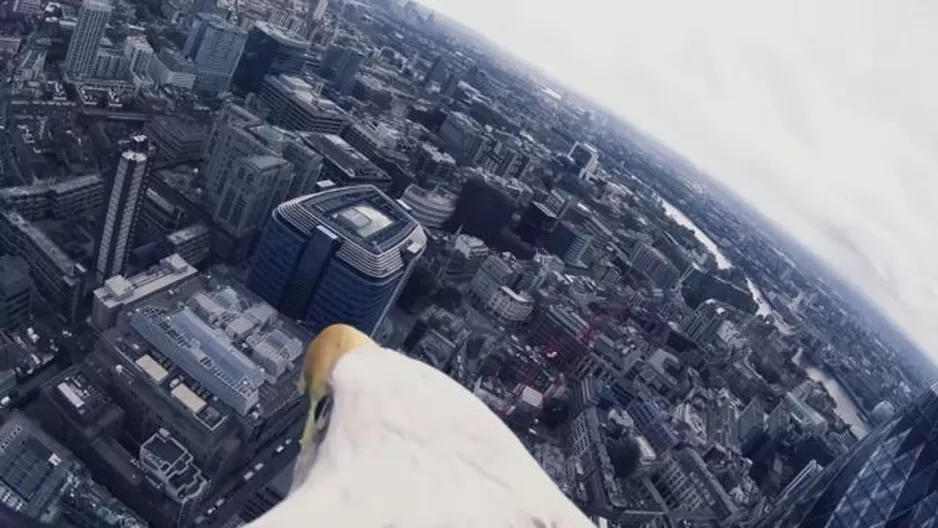 El detrás de cámaras muestra cómo le colocaron la cámara al águila antes de su vuelo por Londres