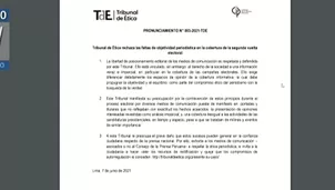 El Tribunal de Ética del Consejo de la Prensa Peruana emitió comunicado