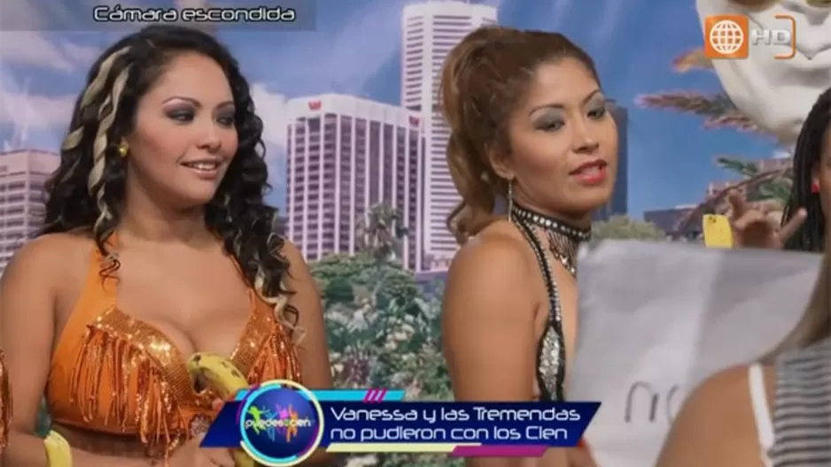 Vanessa Valencia, directora y cantante principal de' Las Tremendas de la Cumbia', llegó junto a su grupo para realizar un spot publicitario. Quien también participó fue la bailarina Irina Grandez, cómplice de la cámara escondida.